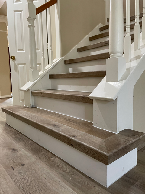 We provide two ingenious designs that effortlessly integrate with most staircases. Our custom stair noses ensure a seamless transition between flooring and risers, handling foot traffic with ease while offering superior comfort. Unlike traditional stair noses with clunky overlaps, our designs deliver a sleek, cohesive appearance and a smoother feel. With the same material used throughout, you’ll enjoy a flawless color match.